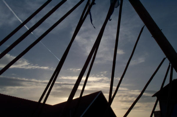 Die Dorfgemeinschaft Weichs stellt 2001 den Maibaum auf