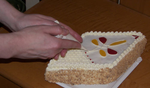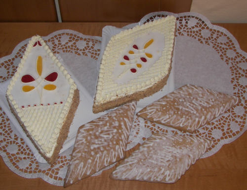 Rautenform gebacken. Frau Meindl weis zu berichten, dass es früher aus Hefeteig