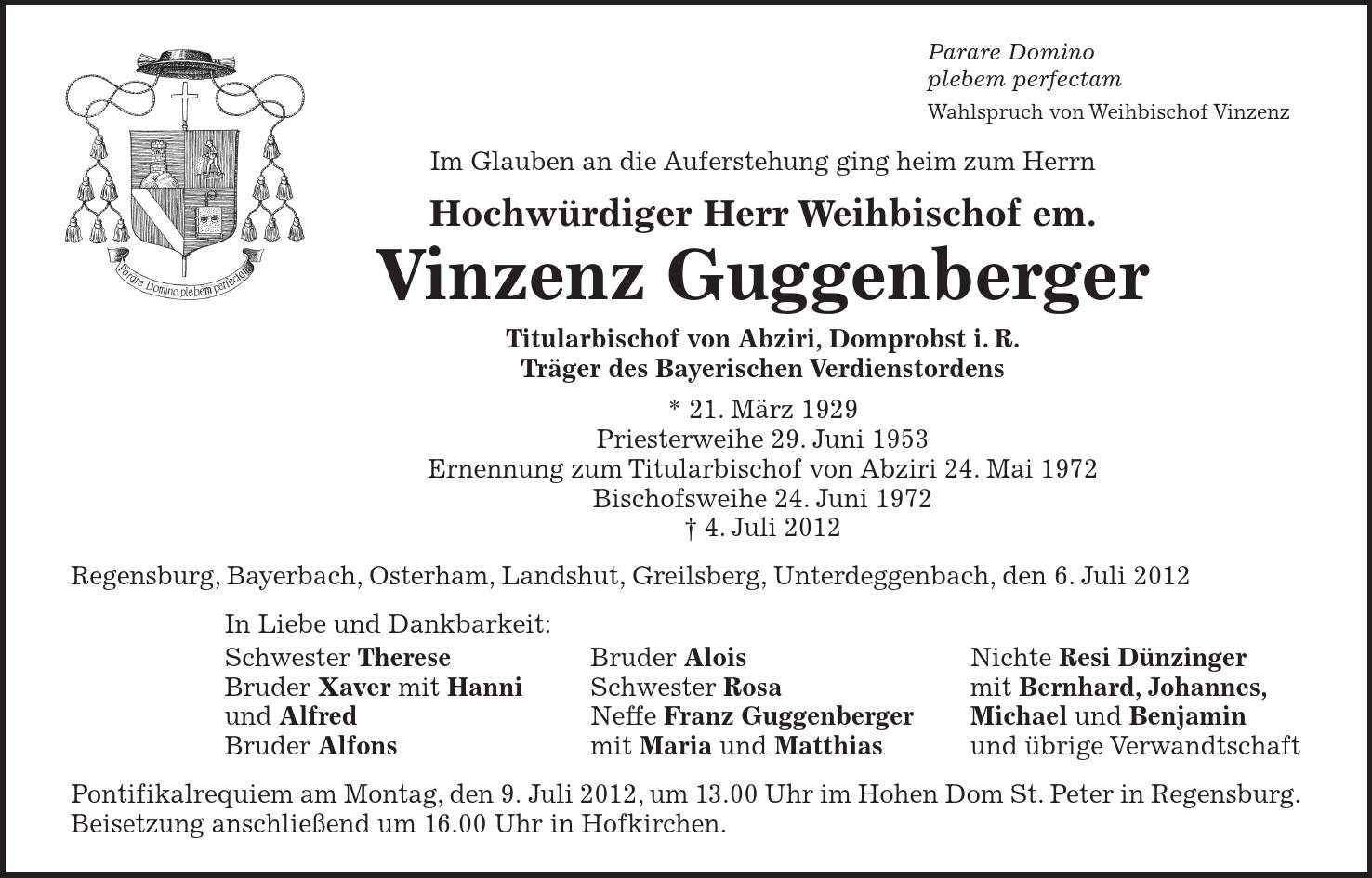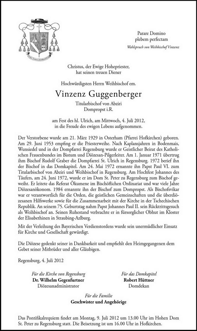 Weihbischof em Vinzenz Guggenberger, Osterham *21.03.1929 - +